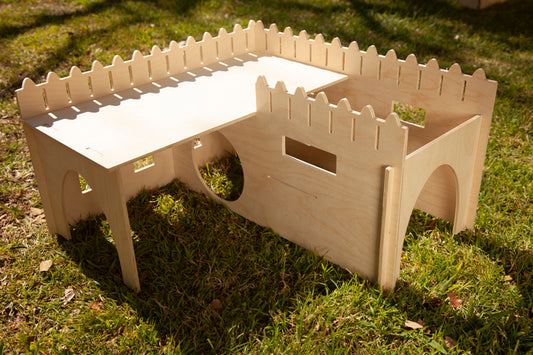 All our wooden toys and castle playsets are made with either untreated birch plywood and locally sourced- chew safe for your fur babies!