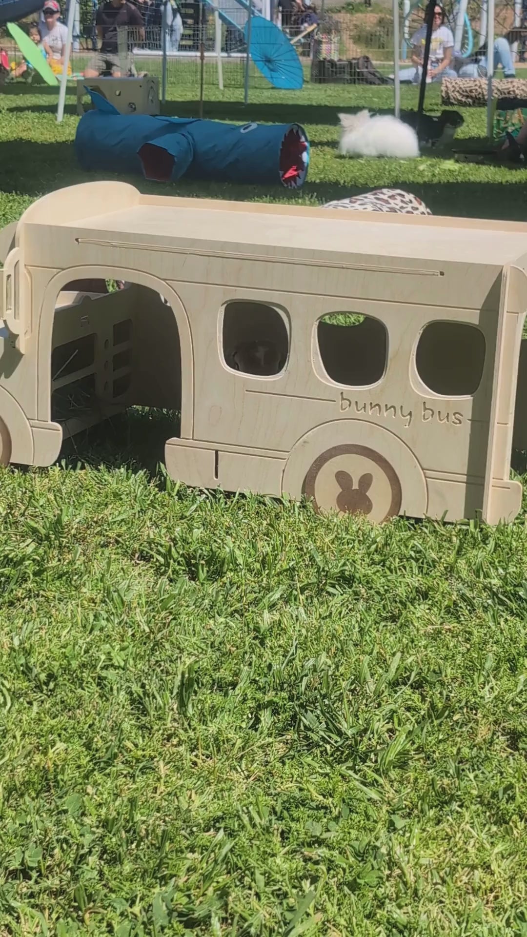 Every bunny aboard! The Bunny Bus is not just a hideout, it’s your rabbit’s ticket to comfort, curiosity, and endless enrichment. Whether they’re lounging in the cabin, peeking through the windows, or munching away at their favorite hay, the Bunny Bus keeps enrichment, comfort, and cuteness rolling all day long.
