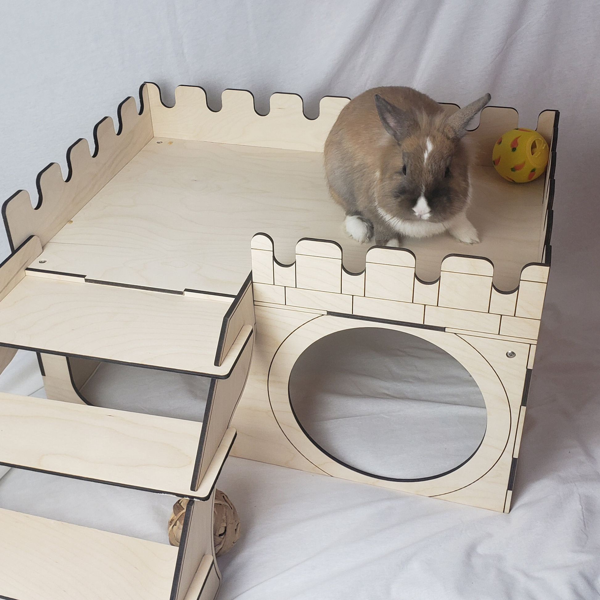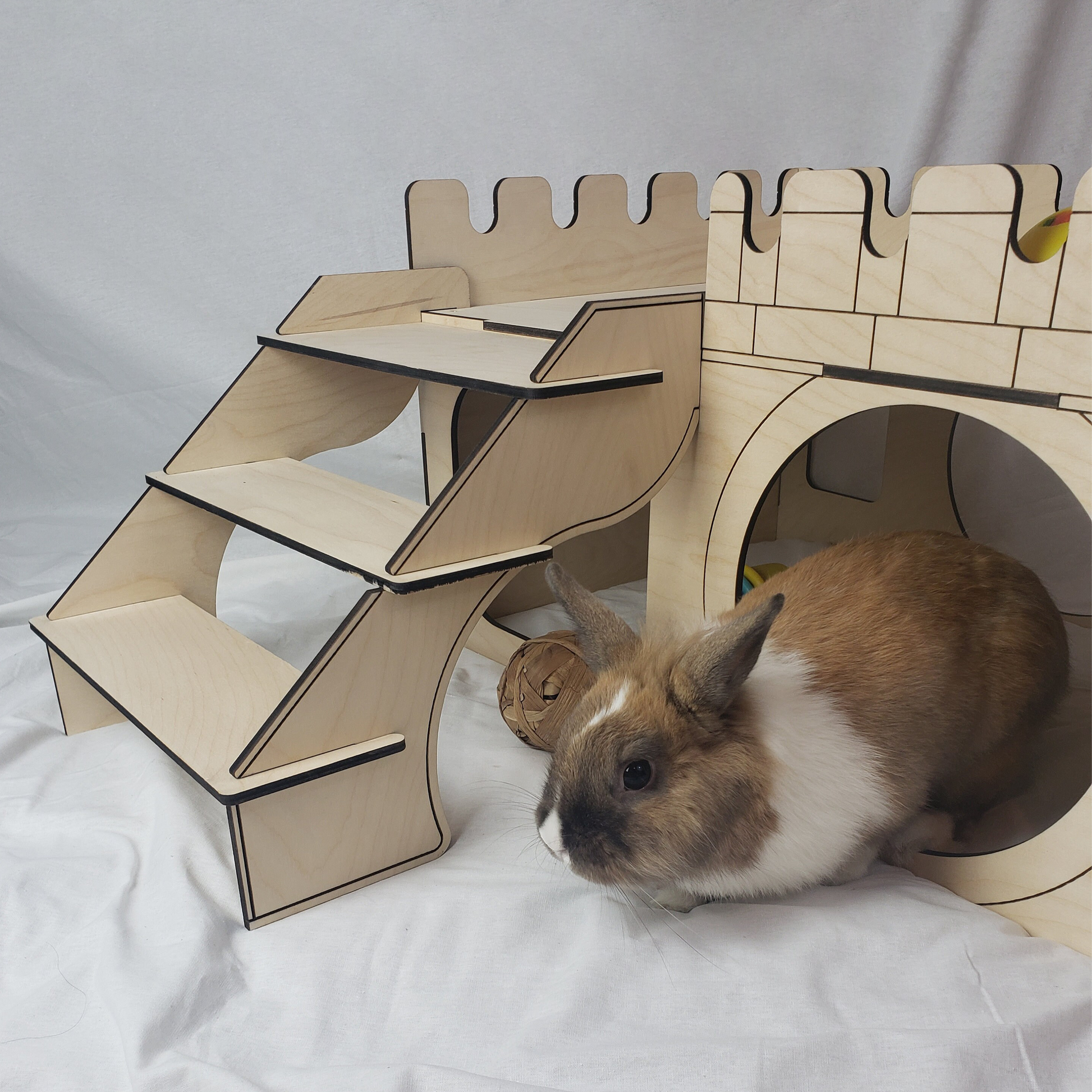 Give your furry friend the royal treatment with our Jumbo Bunny Castle! This spacious hideout is perfect for bunnies and other small animals who love to explore, hide, and lounge like true royalty. With plenty of room to hop around, cozy nooks for nesting, and built-in stairs for climbing fun, this castle is more than just a hideaway.